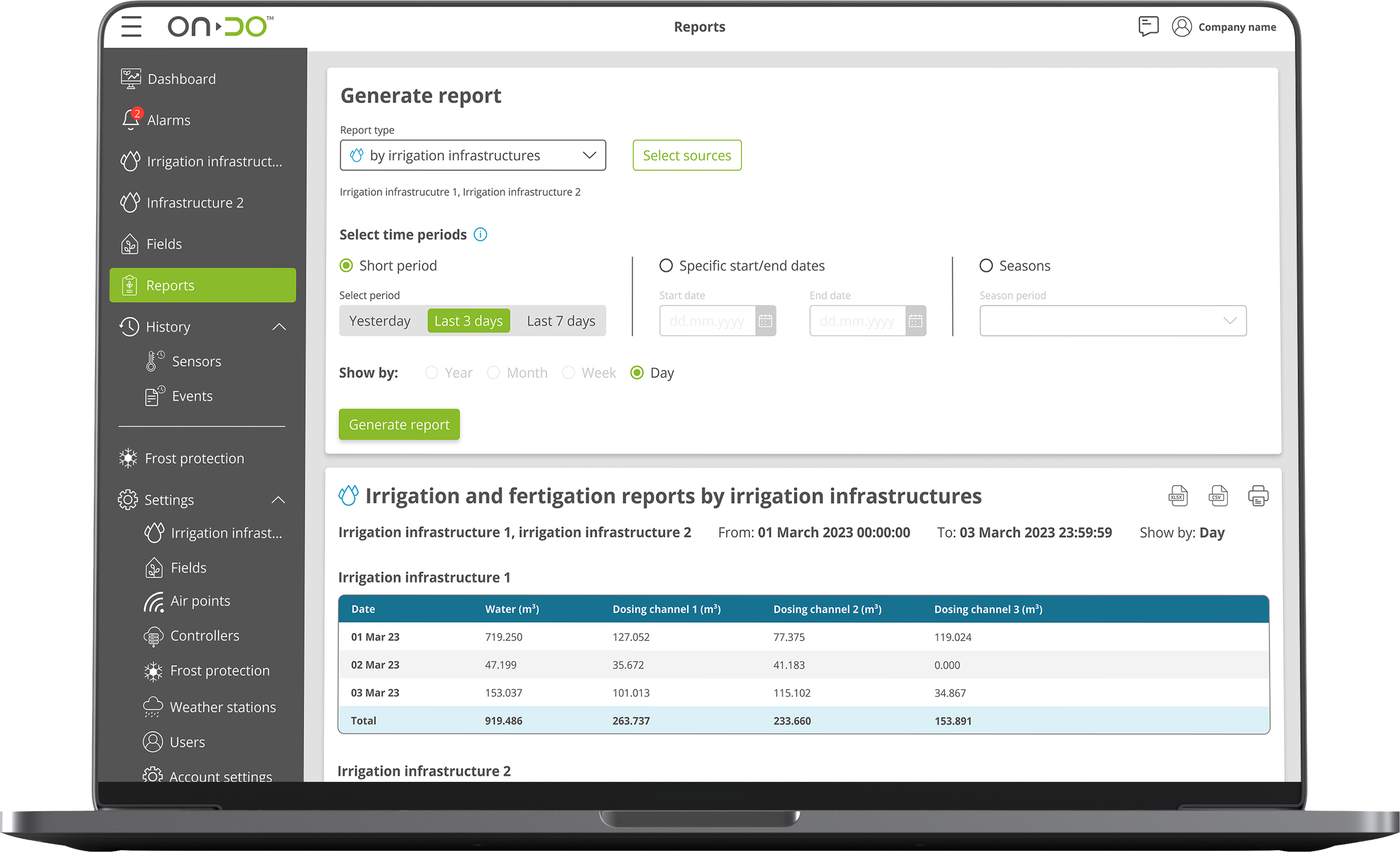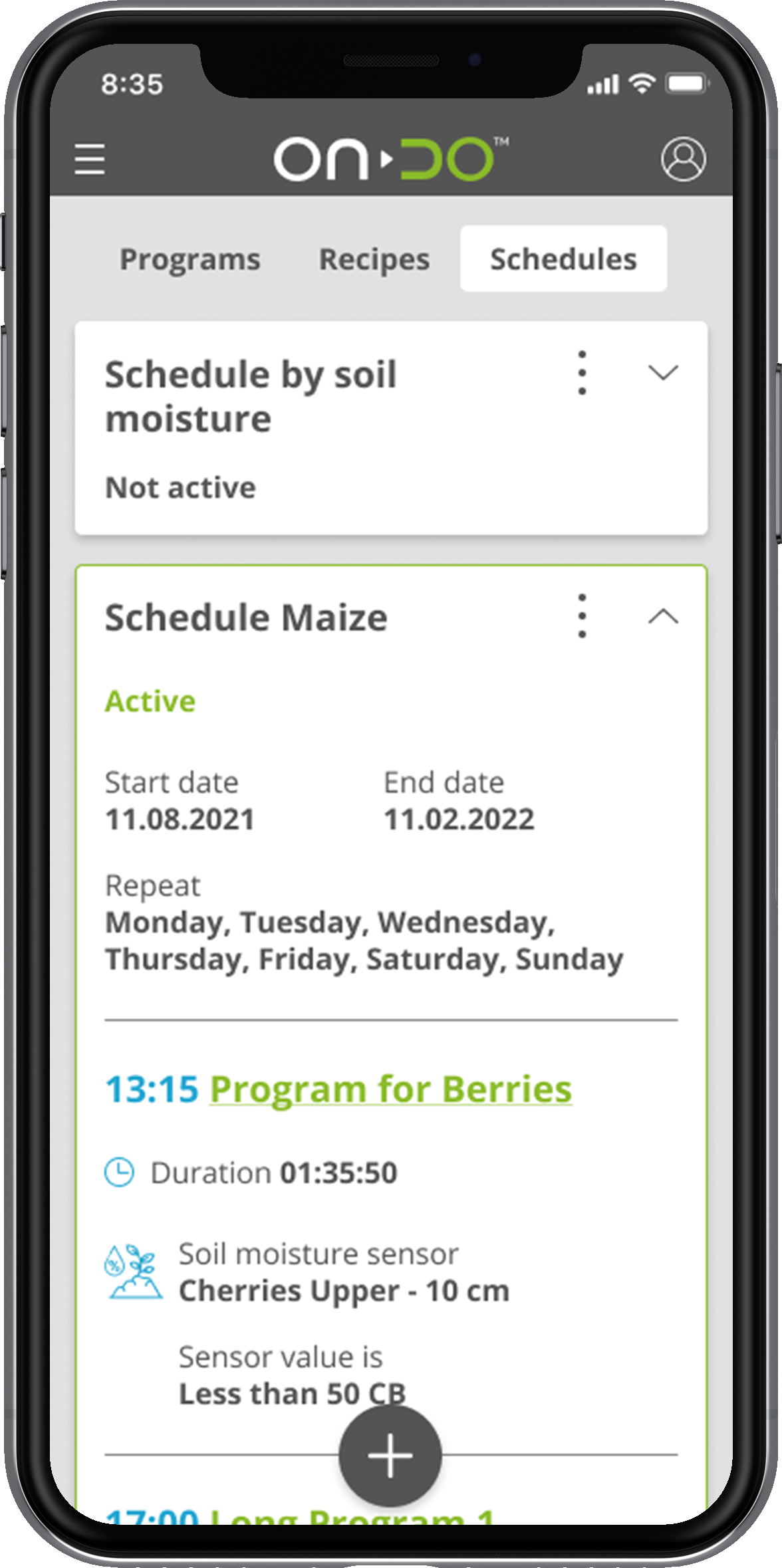 Kastelu ohjelmien, automaattisten aikataulujen tai maankosteuden perusteella. Tukee useita erilaisia kasteluinfrastruktuureja.