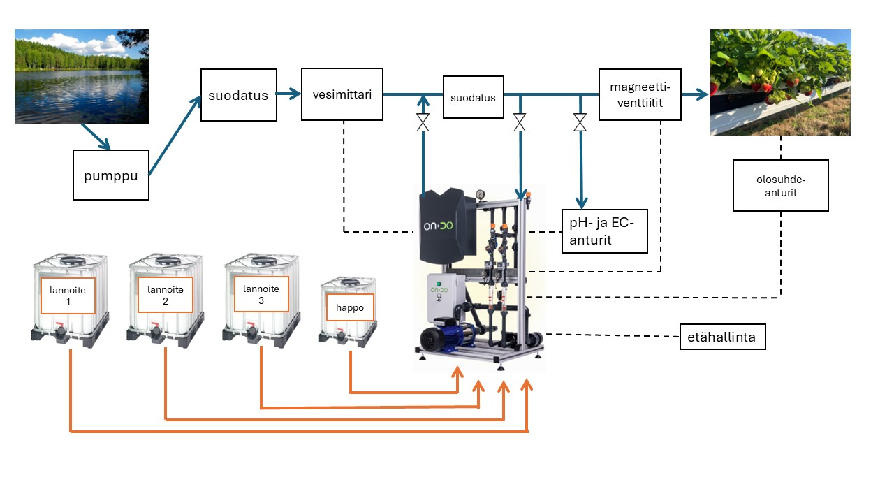 Lannoitejärjestelmä sisältää normaalisti 2-4 annostelukanavaa, mutta sen laajennus on mahdollista aina kuuteen kanavaan. Tämä mahdollistaa kasteluveden virtauksen ja paineen optimaalisen hyödyntämisen ja takaa prosessin maksimaalisen tehokkuuden.