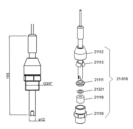 pH-anturin tulee olla koko ajan kosteana. Asenna anturi ilman suojakorkkia ja varmista, että anturin alaosa on täysin upotettuna putken sisällä.