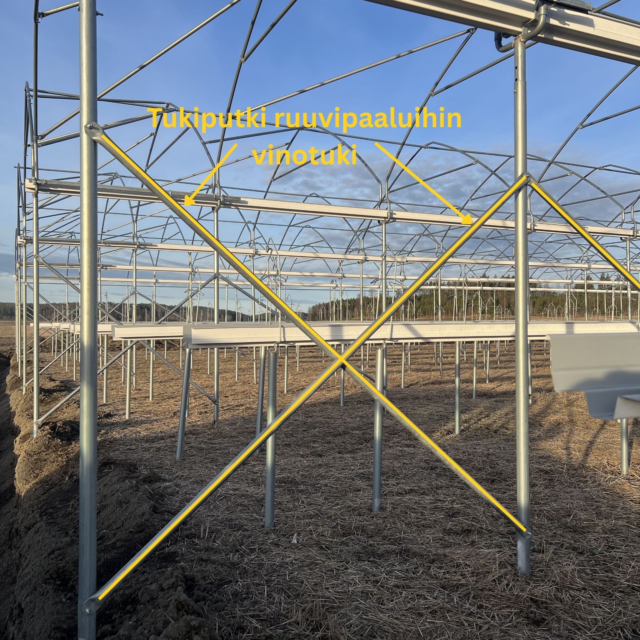 Tukiputkia ristikkäin asennettuna käytetään tunnelin päädyissä jäykisteenä.
